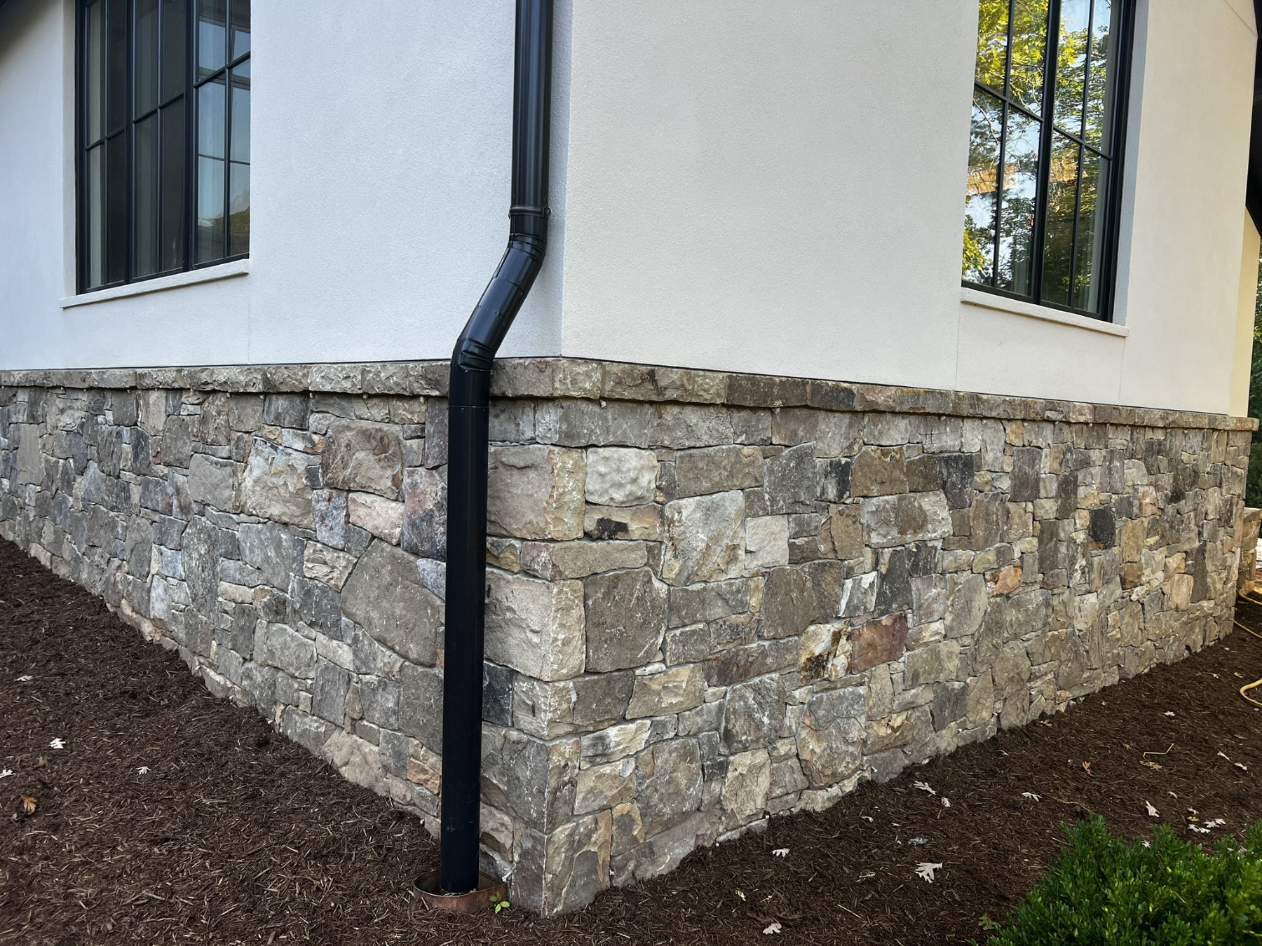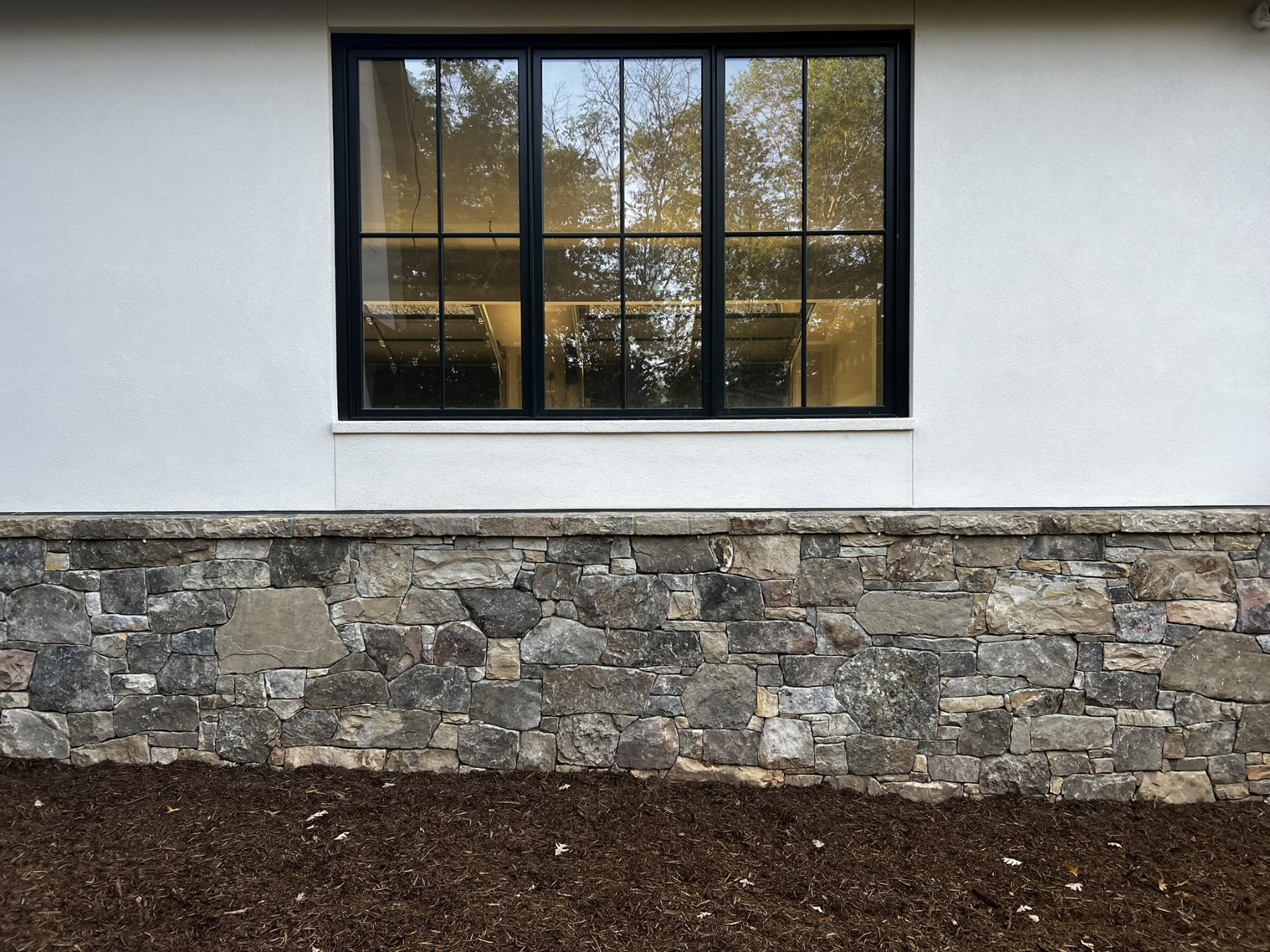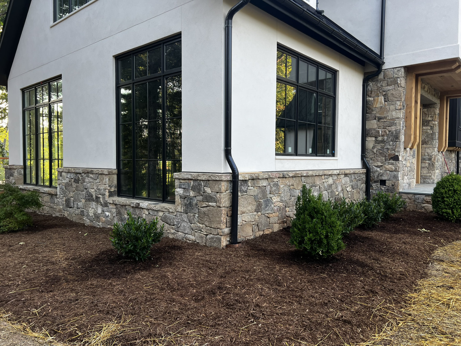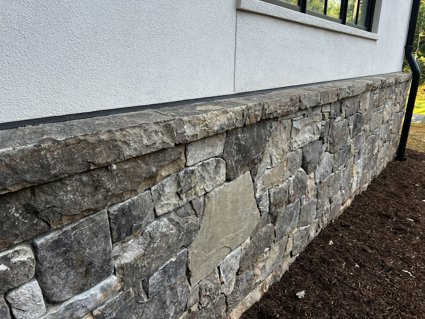 This project consisted of building stone masonry and stucco for the new residence, along with a bluestone terrace, front walkway and granite cobblestone driveway thresholds and edging.