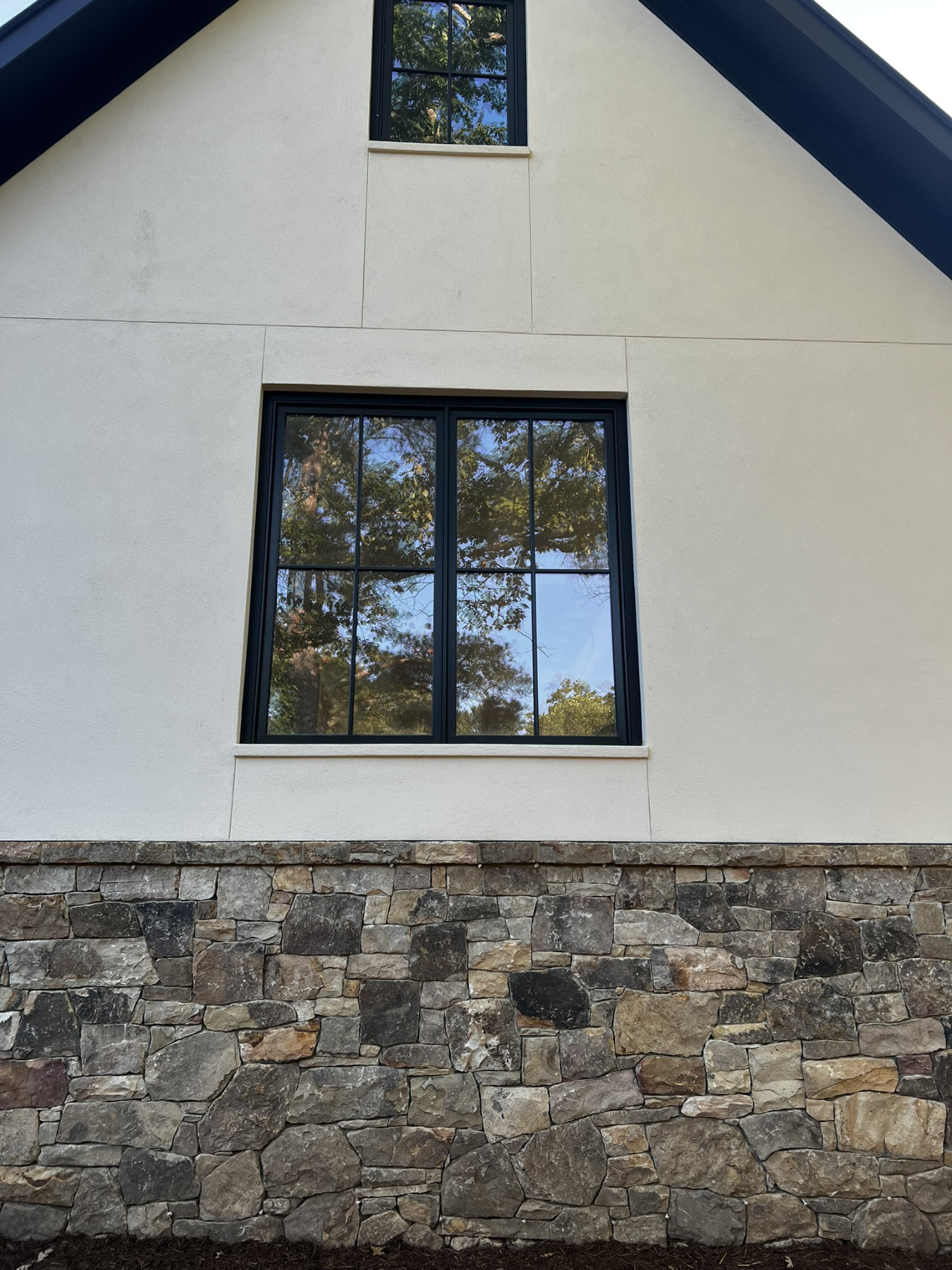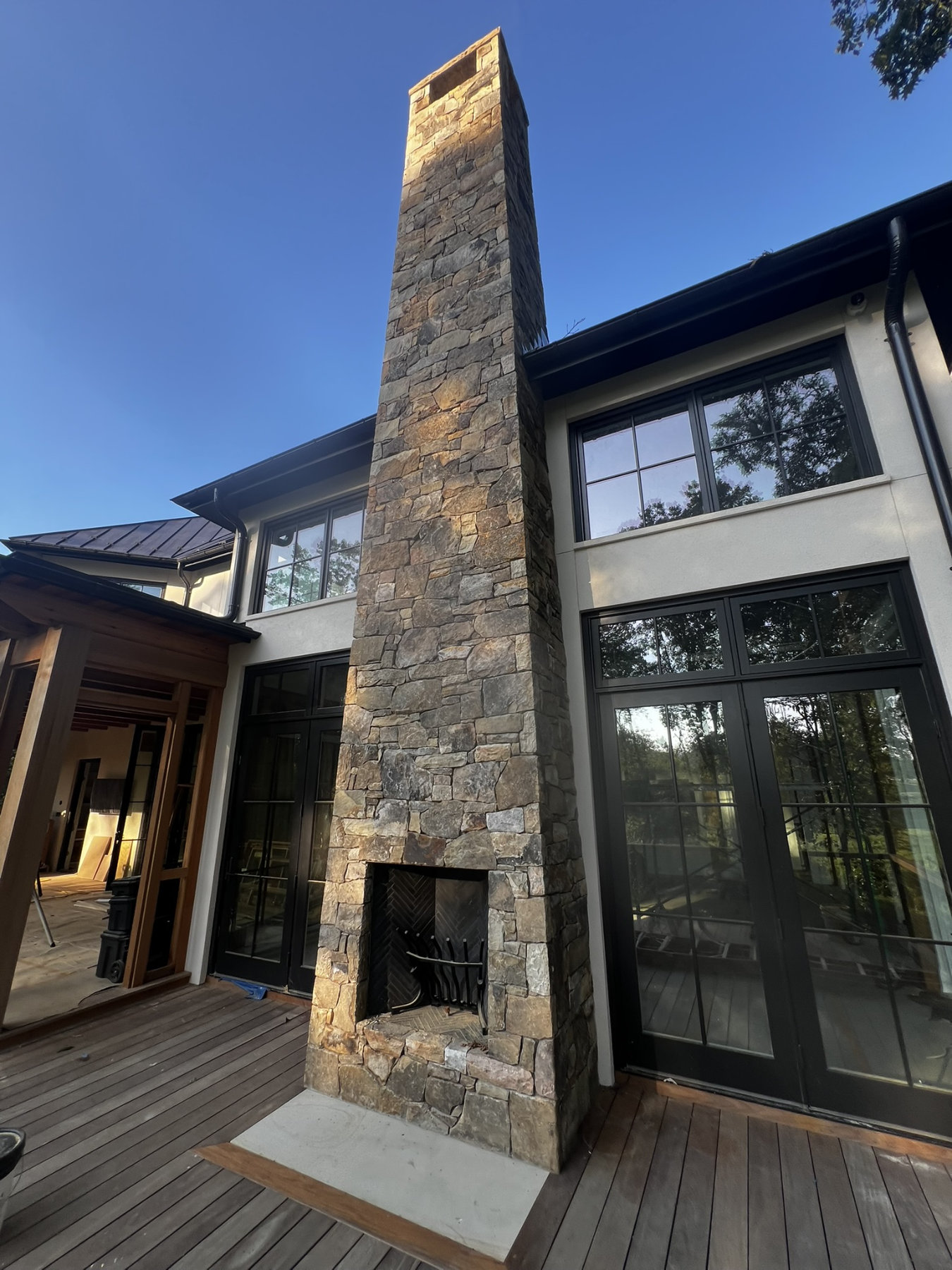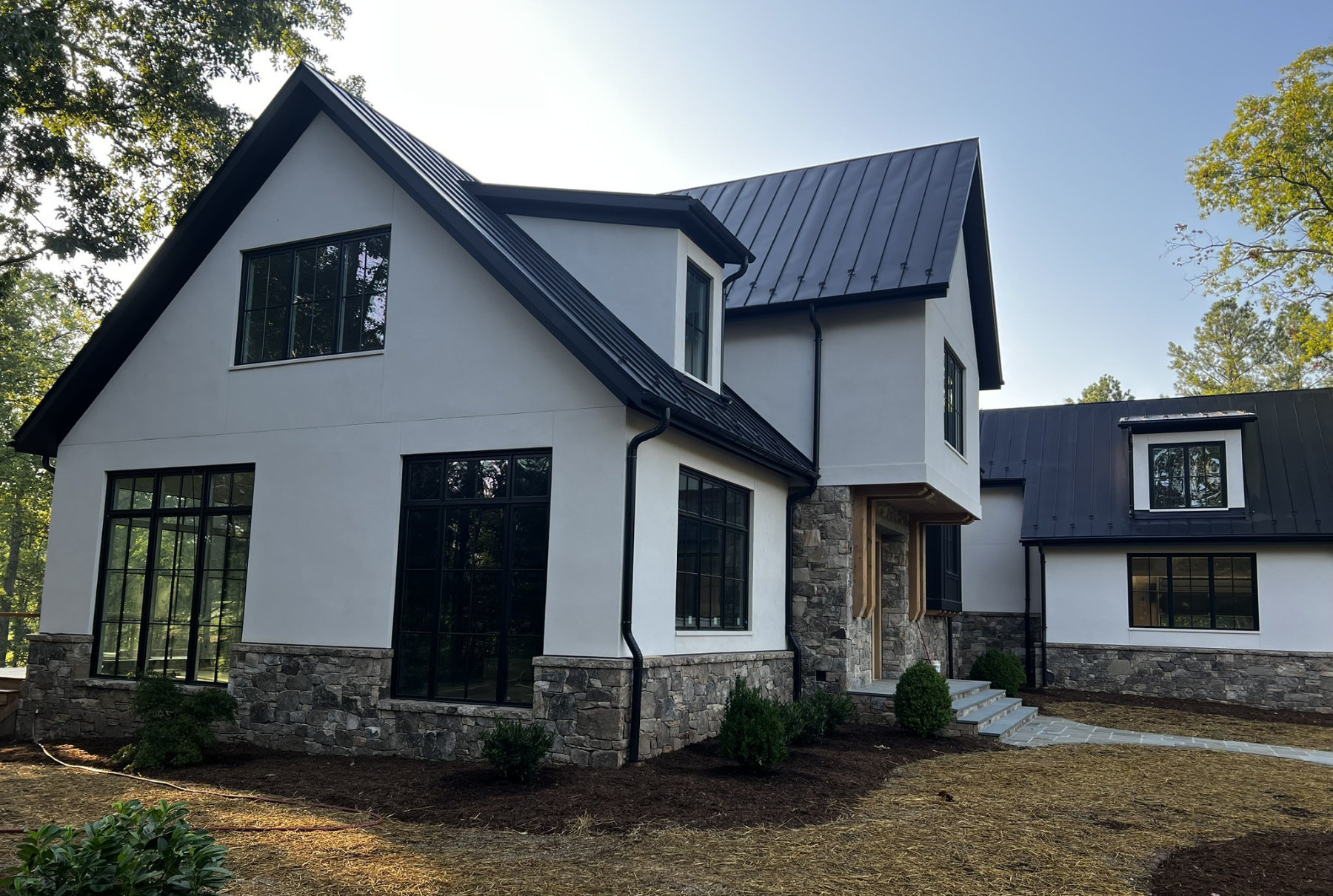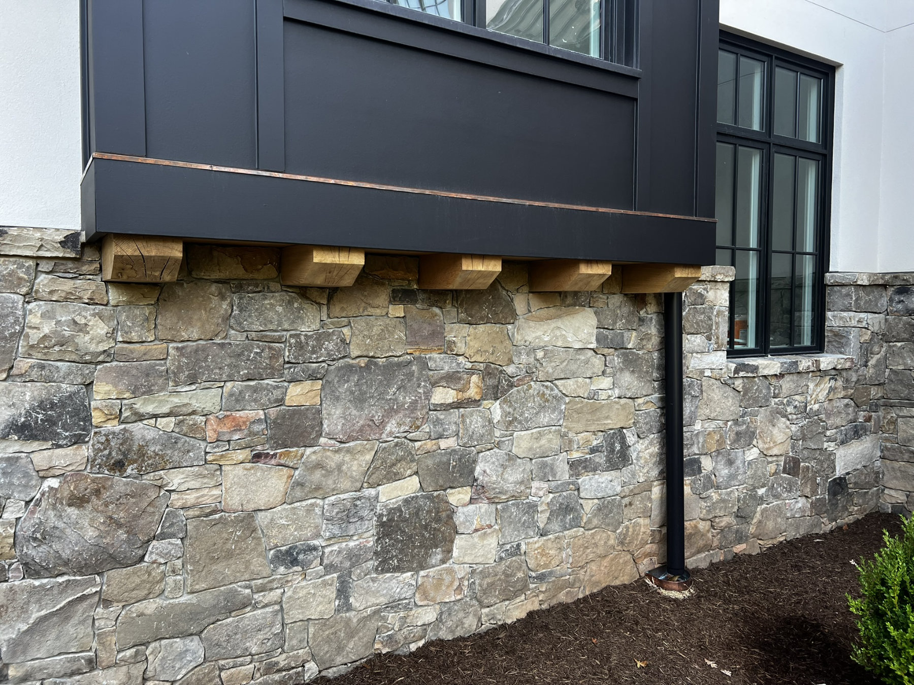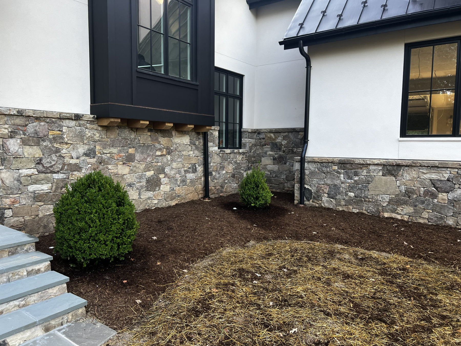 This project consisted of building stone masonry and stucco for the new residence, along with a bluestone terrace, front walkway and granite cobblestone driveway thresholds and edging.