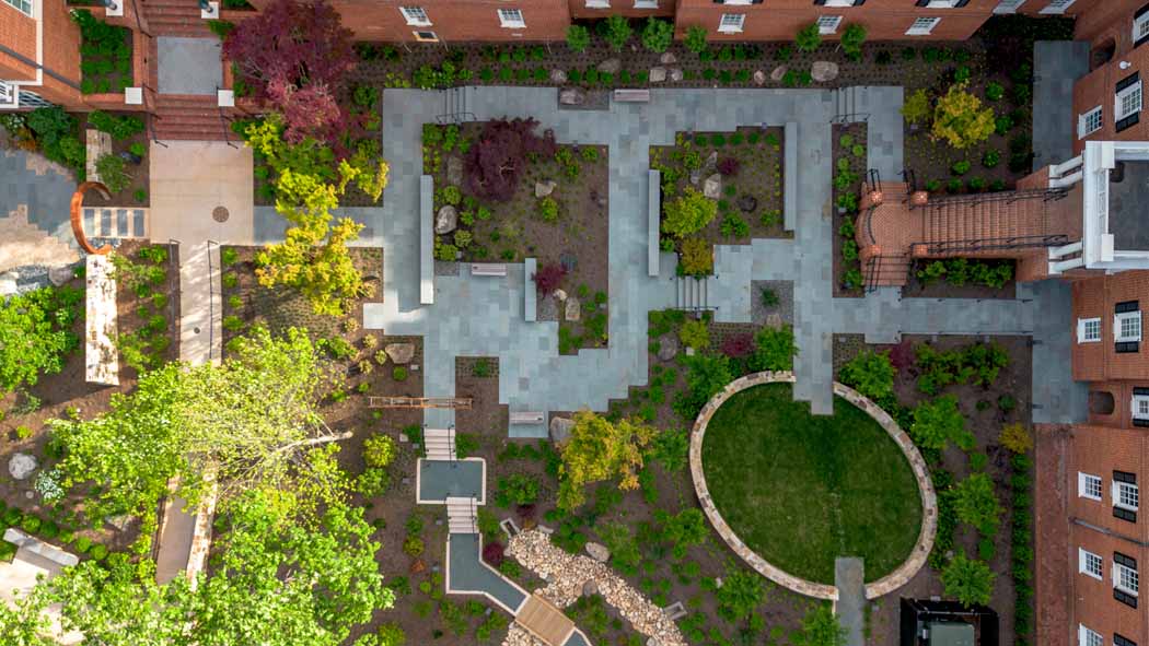 Landscape Architect: Waterstreet Studio Stone Vendor: White Oak Stone Company Fieldstone Site Walls: Oak Ridge Ashlar Terraces & Walkways: Thermal Blue Bluestone, Monolithic Thermal Bluestone Steps