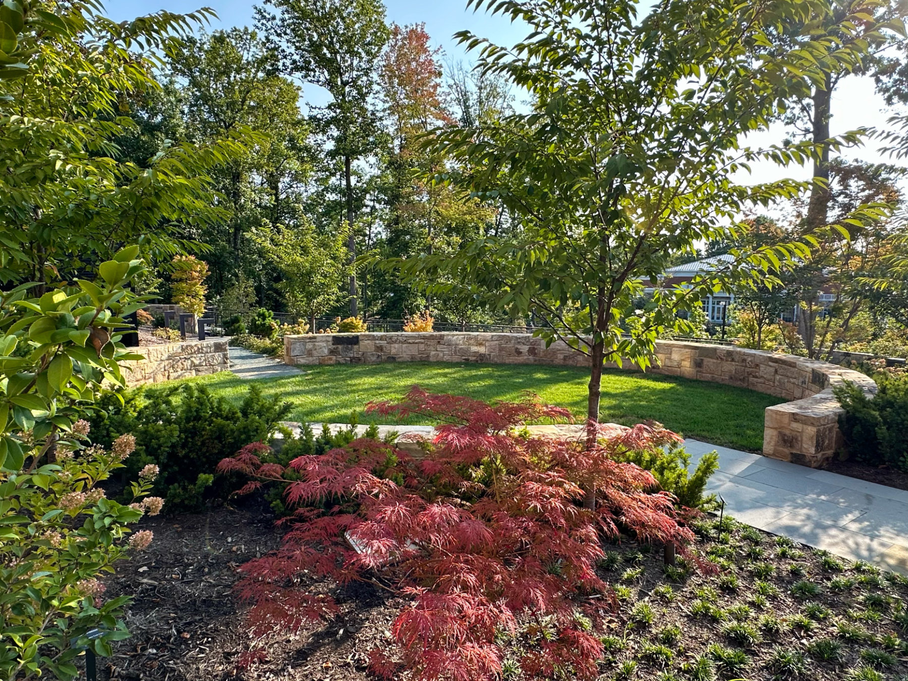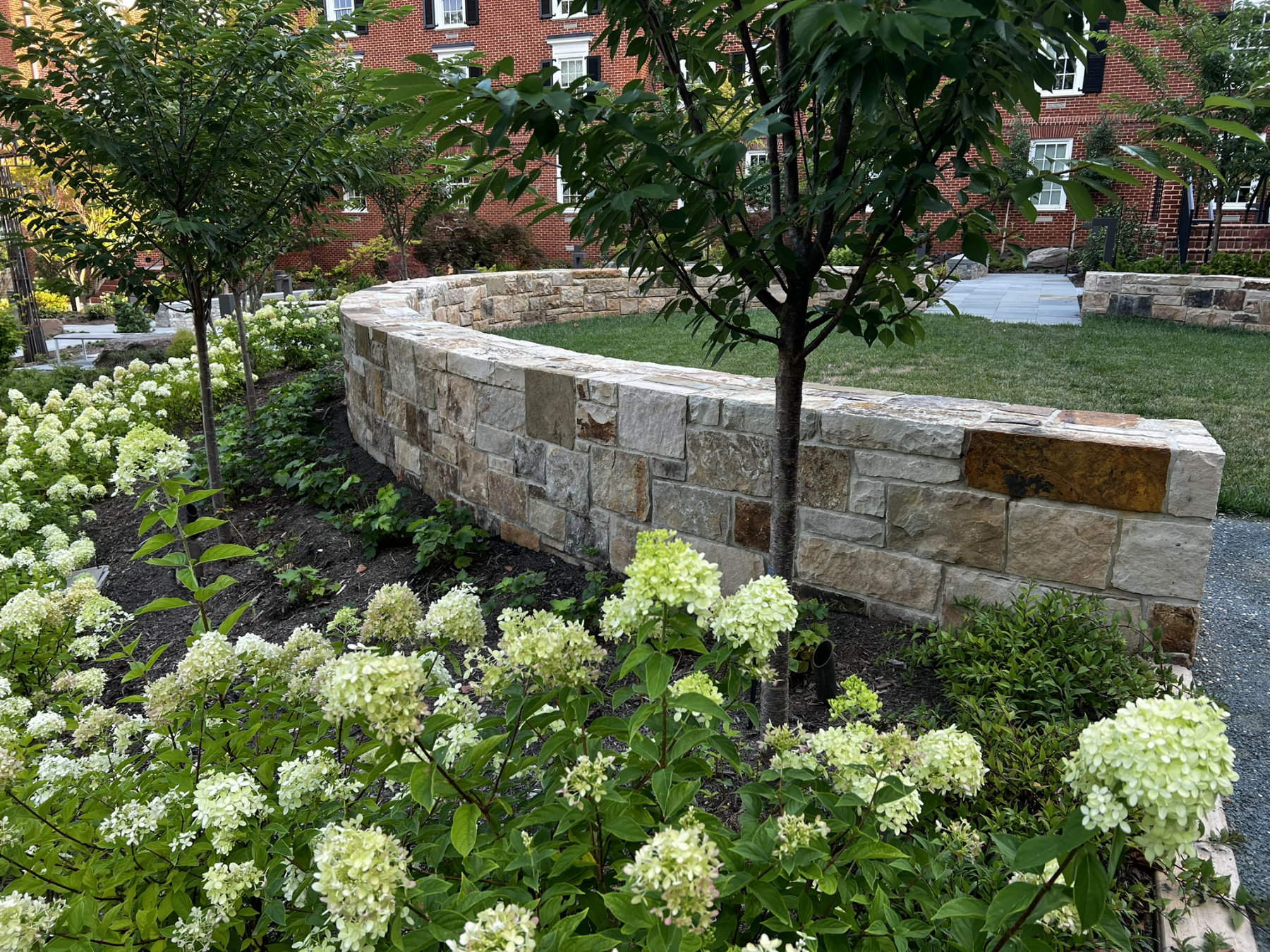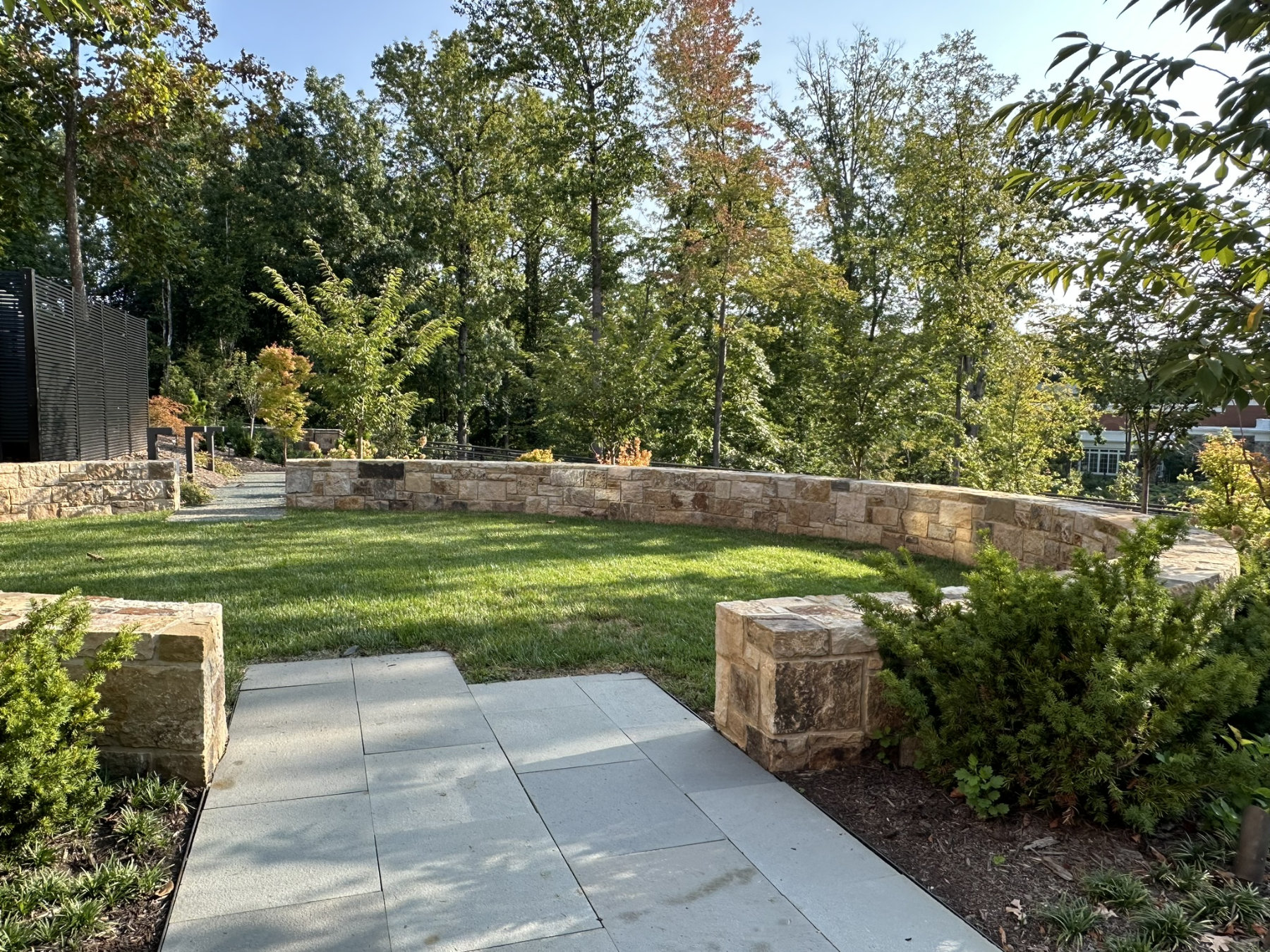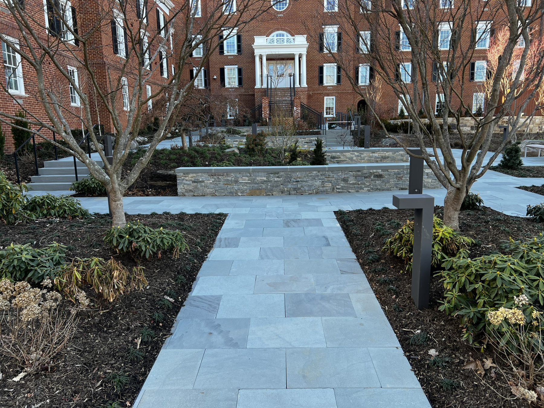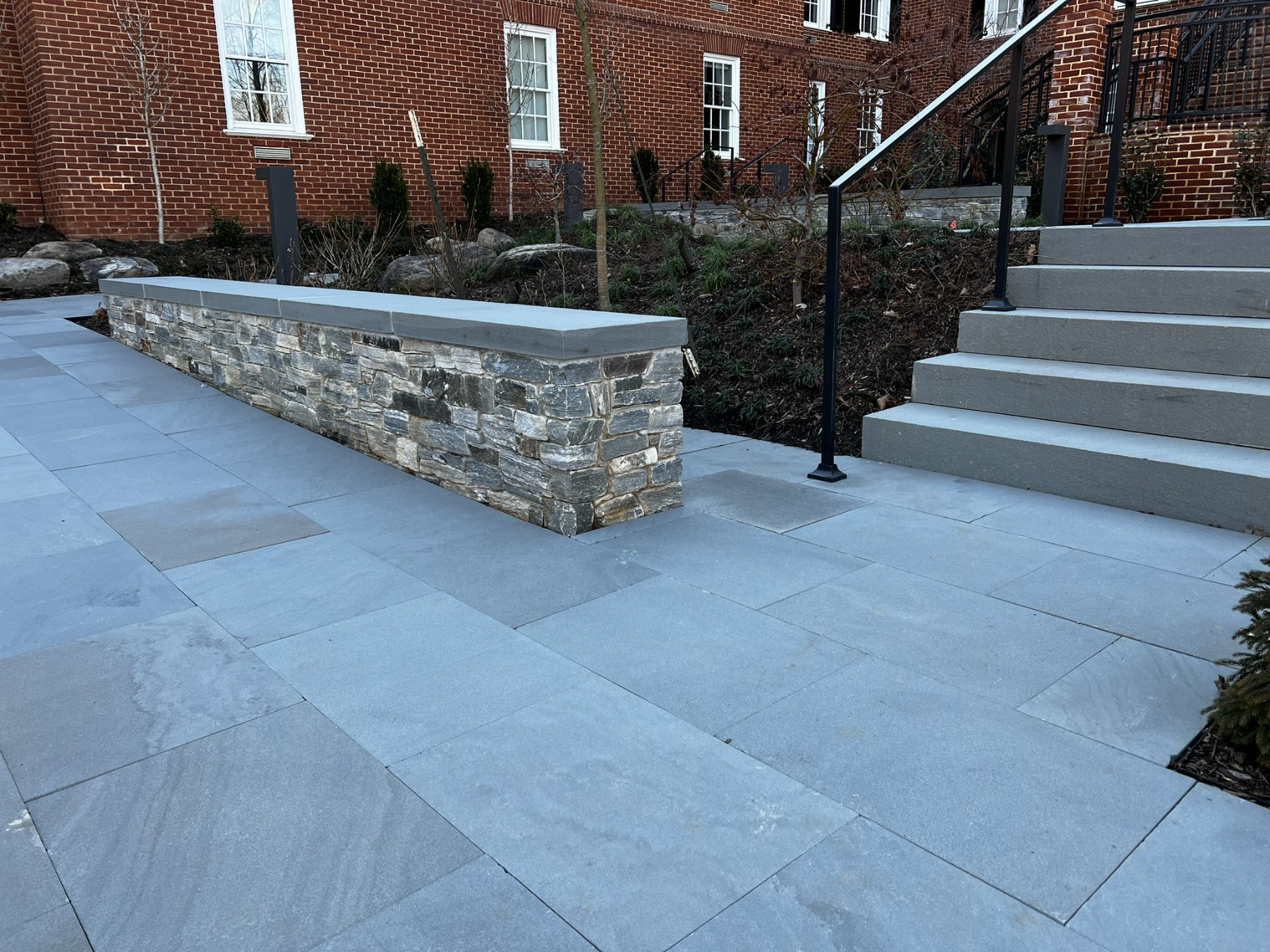 This project consisted of site work, stone masonry site walls, monolithic bluestone steps and bluestone paving.