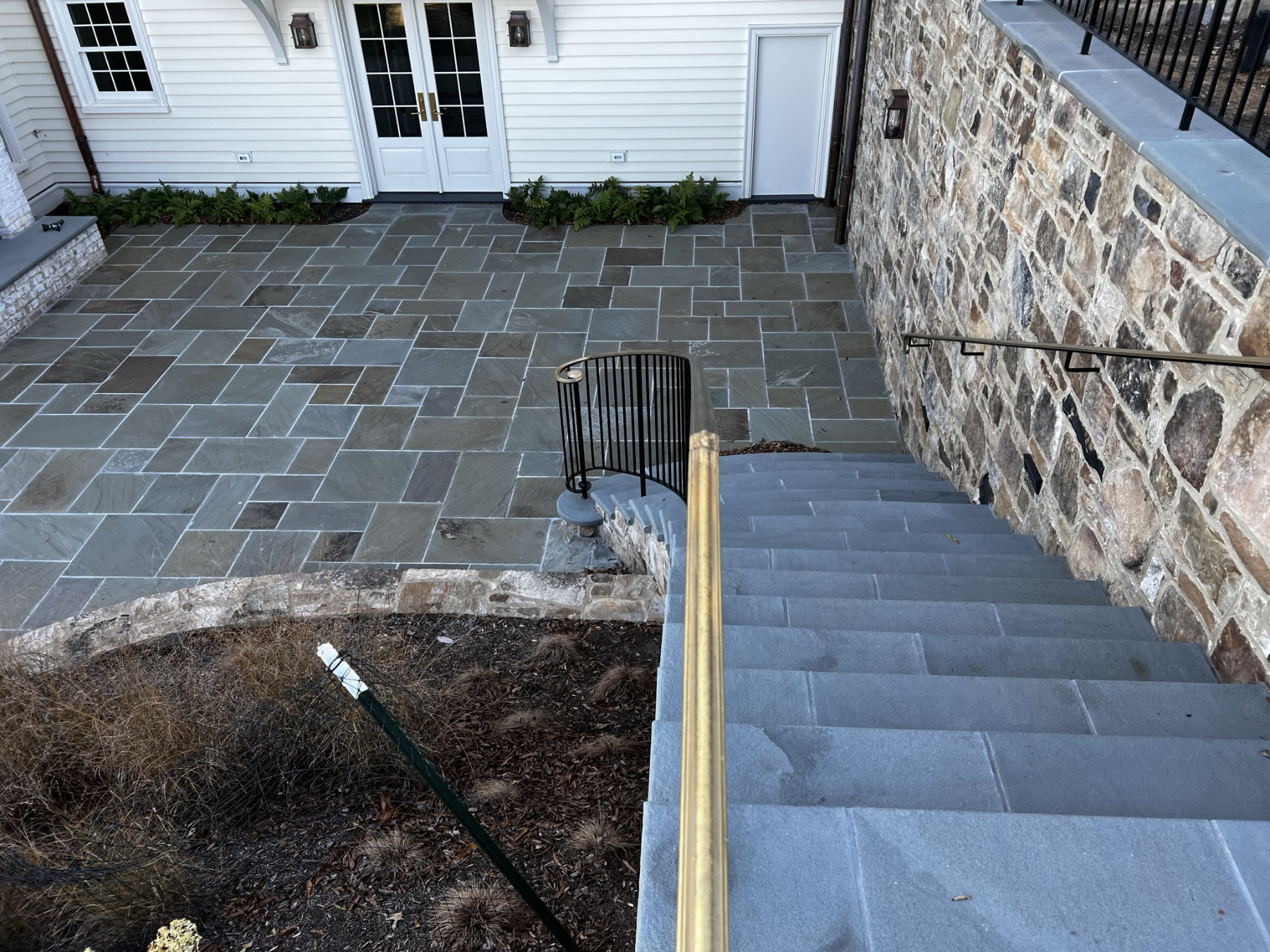 Terraces & Steps: Natural Cleft Full Color Bluestone, Thermal Bluestone Treads & Radius Borders