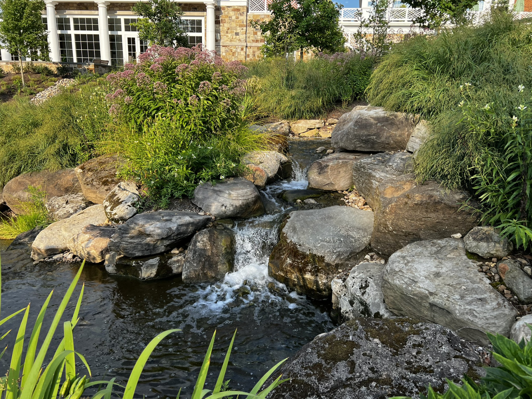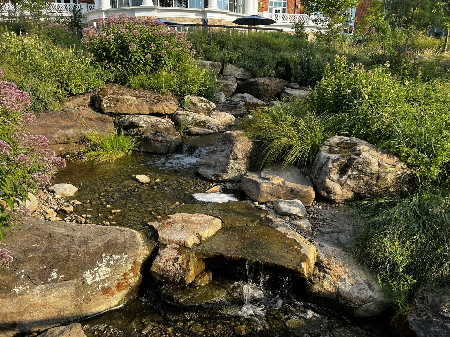 A pool should belong to the garden rather than interrupt it. We construct gunite pools with stone coping, terraces, and integrated spas, precisely aligned to the architecture of the home and the cadence of the landscape. Water features—whether a quiet fountain, a restrained cascade, or a still reflecting surface—are composed as integral elements, lending movement, sound, and a sense of repose. The result is a private retreat, equally suited to quiet mornings and lively weekends.